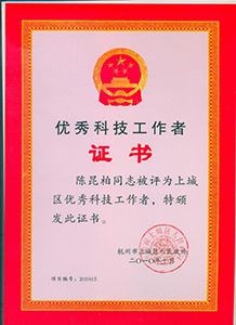 陳昆柏同志被評為上城區(qū)優(yōu)秀科技工作者