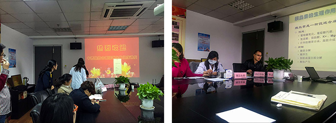 醫(yī)生分析公司存在比較多的健康問(wèn)題是血脂高、血糖高、脂肪肝、高尿酸血癥以及甲狀腺結(jié)節(jié)等。對(duì)于脂肪肝,醫(yī)生重點(diǎn)分析了其形成原理,讓我們更加懂得了合理飲食的重要性。而對(duì)于血糖高的問(wèn)題,醫(yī)生帶了血糖檢測(cè)儀,給參會(huì)的每個(gè)人免費(fèi)做了血糖檢測(cè),并講解了血糖和糖尿病的相關(guān)醫(yī)學(xué)知識(shí),尤其是糖尿病現(xiàn)在已是國(guó)人的第二大健康殺手,必須引起重視,所以醫(yī)生重點(diǎn)講了控制血糖,糖尿病的治療和預(yù)防措施。甲狀腺結(jié)節(jié)也是公司很多員工都存在的健康問(wèn)題,醫(yī)生也對(duì)甲狀腺結(jié)節(jié)的知識(shí)做了介紹,重點(diǎn)是定期檢查,注意飲食。期間也有員工就自己的健康問(wèn)題做了咨詢(xún),也有員工帶了自己的體檢報(bào)告給醫(yī)生,醫(yī)生都做了認(rèn)真的講解。