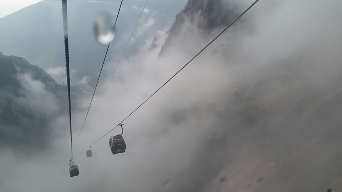 一路走走停停周圍怪石林立,如在山水畫中穿梭。不知不覺中我們已到了下山的時(shí)候了。下山時(shí)坐的是大纜車,而且有那么幾秒讓我感覺是自己飄了起來一樣,嚇得我都快哭了呢!
