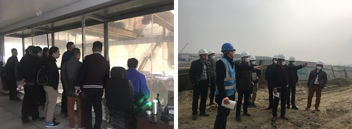 走出電廠,代表們又參觀了土壤污染修復項目,詳細了解了整個項目的背景、狀態(tài)、技術及修復進展,并參觀了現(xiàn)場的施工大棚和臭氣處理及污水處理設備。