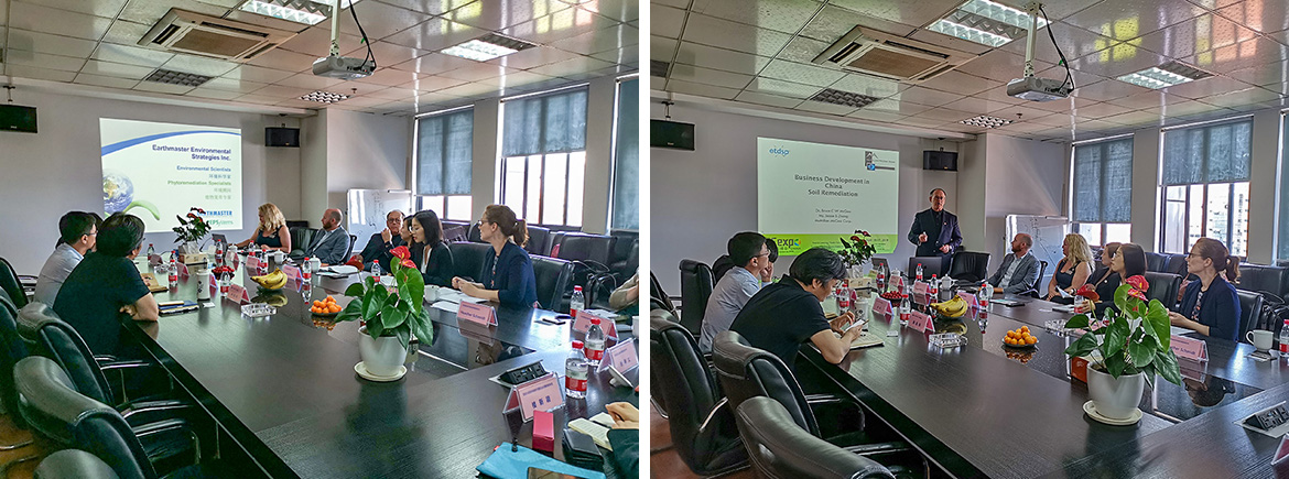 客人也分別介紹了自己公司的情況,Earthmaster業(yè)務(wù)發(fā)展副總裁Amber Flamand介紹該公司是一家專業(yè)的環(huán)境咨詢公司,具有二十余年的發(fā)展歷史,Earthmaster運(yùn)營(yíng)副總裁Adam Dunn詳細(xì)介紹了公司的主打技術(shù)——PEPSystems植物復(fù)育法及運(yùn)用該技術(shù)成功修復(fù)污染土壤的工程案例。McMillian-McGee總裁Bruce McGee介紹McMillian-McGee是一家專注原位熱脫附修復(fù)技術(shù)的企業(yè),自主研發(fā)了多套專利技術(shù)進(jìn)行污染土壤的原位熱脫附修復(fù),并在全球范圍內(nèi)獲得廣泛使用。最后,博世華團(tuán)隊(duì)分別就植物修復(fù)和原位熱脫附技術(shù)與來訪公司進(jìn)行了交流和討論。