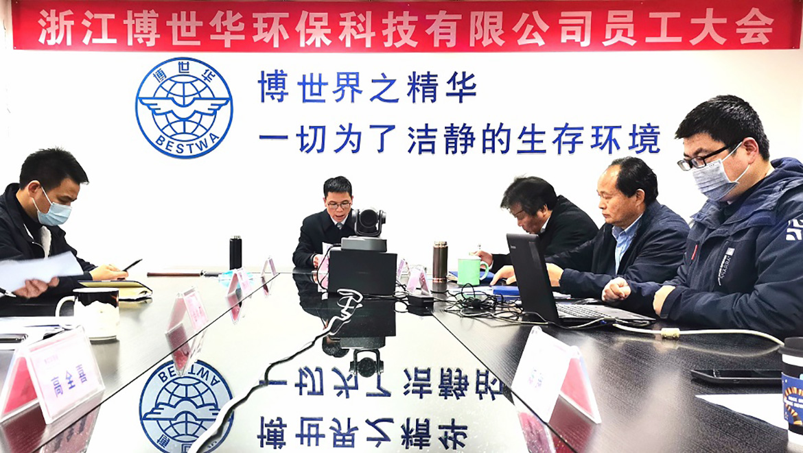 金牛辭歲寒風盡,白虎迎春喜氣來。2022年1月25日上午,浙江博世華環??萍加邢薰?021年度員工大會圓滿召開。因疫情防控需要,本次會議采取線上直播的形式,由總經理王衛民主持。