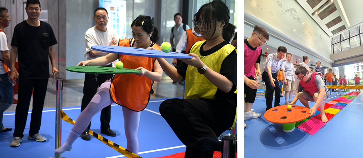 這是一項平衡能力與速度的比拼,每位選手你追我趕,現(xiàn)場氣氛熱烈,助威聲此起彼伏。