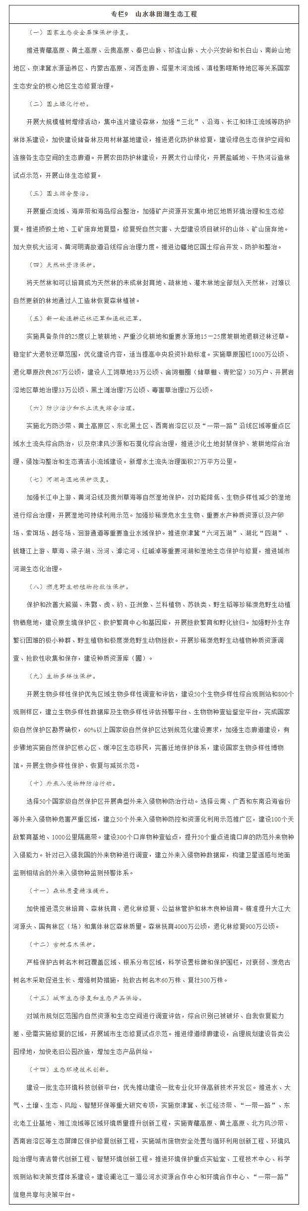 第九章 實施一批國家生態環境保護重大工程